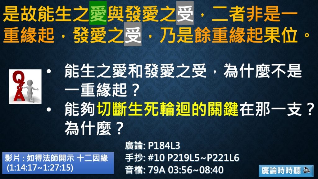 - 佩霏:p183L又為說明果之爱生~p184L4餘重緣起果位