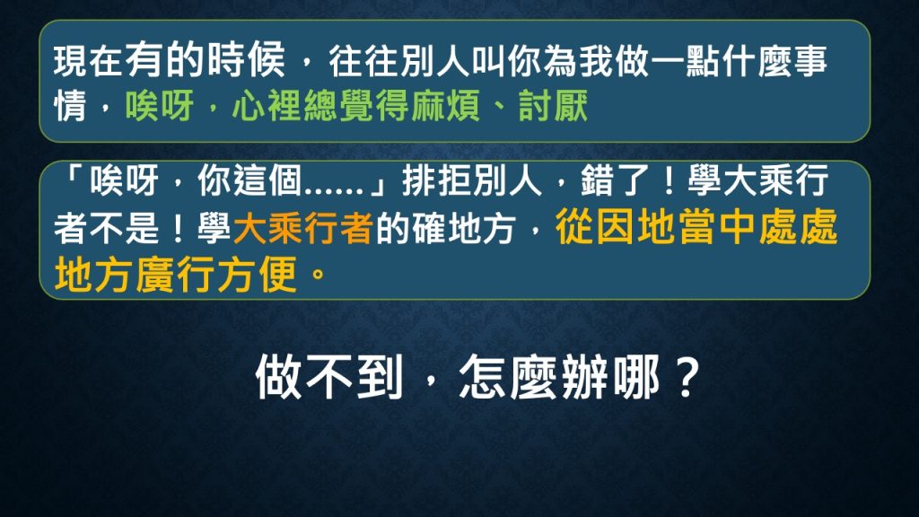 (2)因為那些由於慧力不夠,由於經驗不足等等產生的不理解,甚至對正法沒有熱忱,師父非常擔心我們錯過這個跟《菩提道次第廣論》,或者說跟教法相遇的時光。