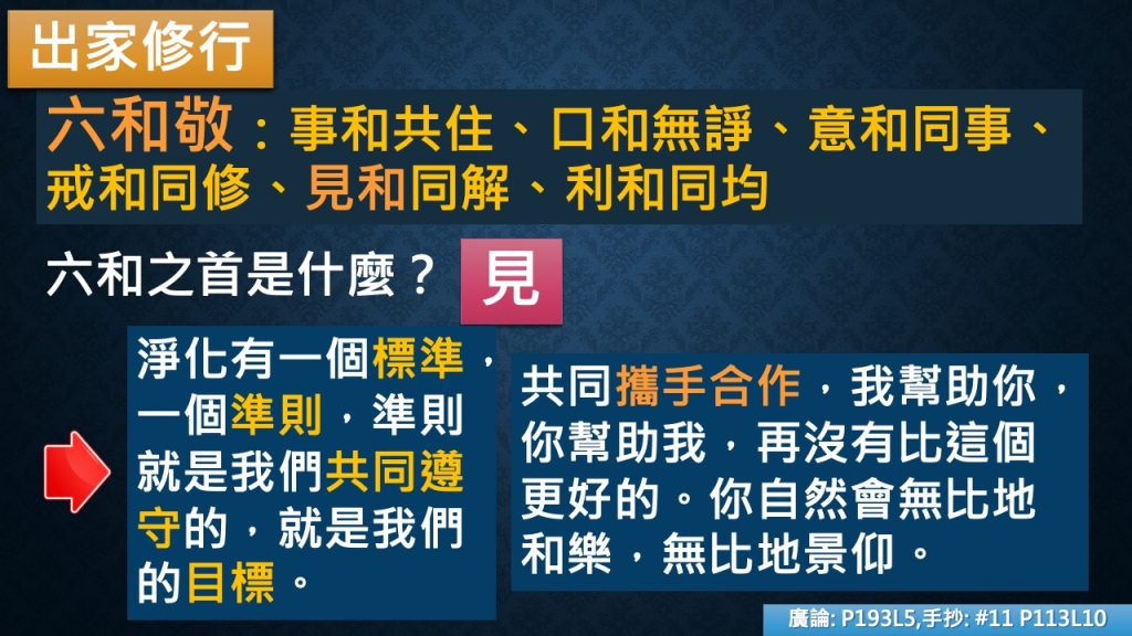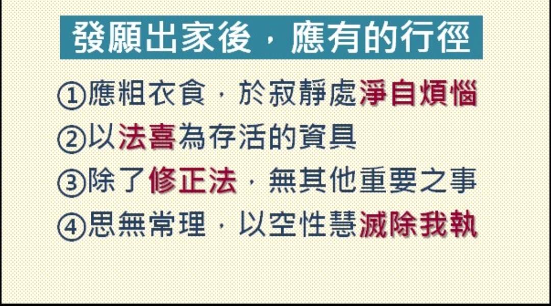 ﹡「為了改變我們的現在、為了改變我們的明天,我們坐在這裡來觀察自己的心,來學習如何調整。用現在的努力,調整明天的生命狀況,其實就是我們要做的。所以,還是要有一個為利無窮無盡的有情,我們要希求佛果的發心。」