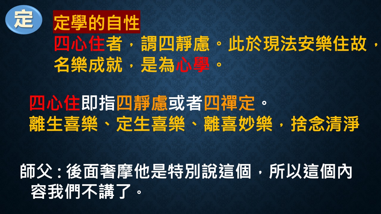 「好好地隨喜、好好地開心吧!不管你有多少不開心的事情,有多少求不得的那些心事,但是我們值遇了師父、值遇了這麼好的教法,這應該是生命中最值得慶祝、最燦爛的事情,所以還是請你微笑吧!」研討題目: