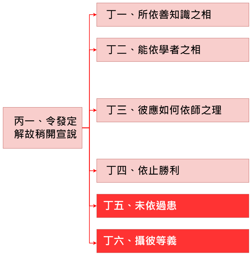 不依過患者,請為知識若不善依,於現世中,遭諸疾疫非人損惱,於未來世,當墮惡趣,經無量時 受無量苦,又諸功德,未生不生,已生退失