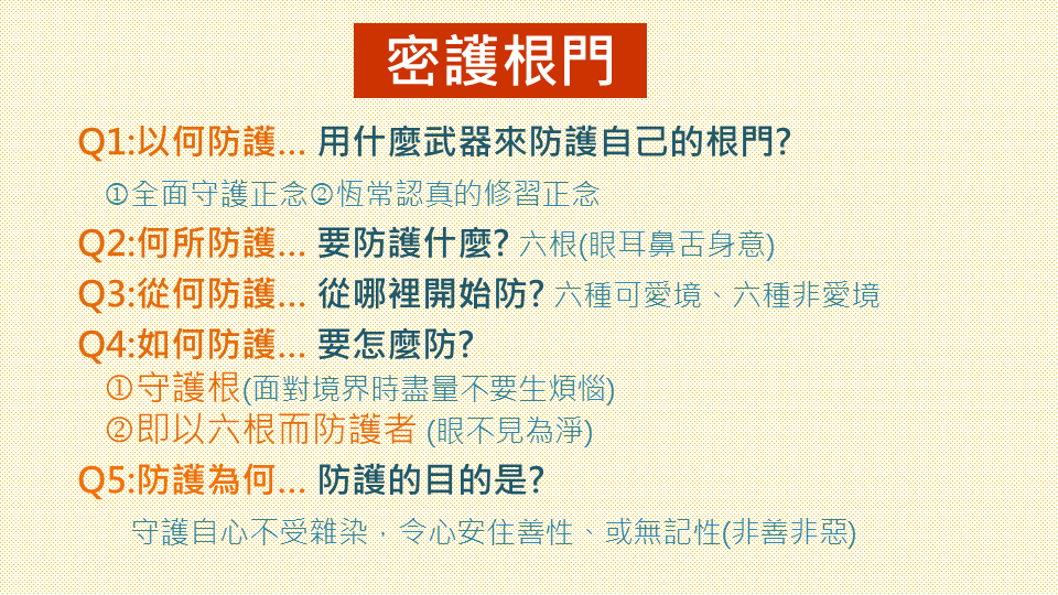 - 第三步是正式去做的時候,必須具備正念和正知來做。這樣就會達到修行的效果。