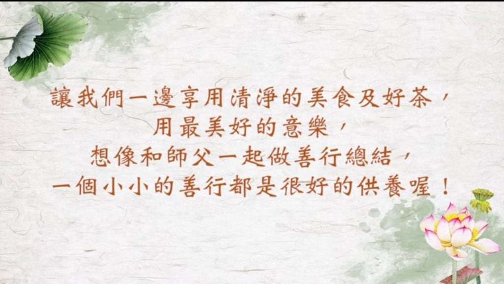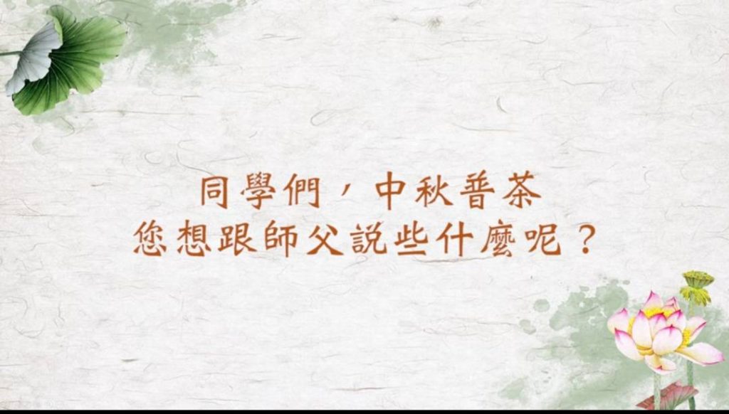 19:25全班大合照、虔敬班呼:「花好月圓,師父、老師我們一起團圓」