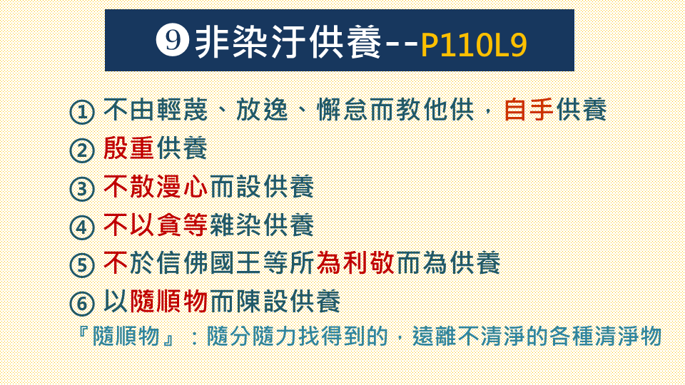 1.孟勵:p111L9復次恆須受飲食故~pp112L3當勤精進供養三寶